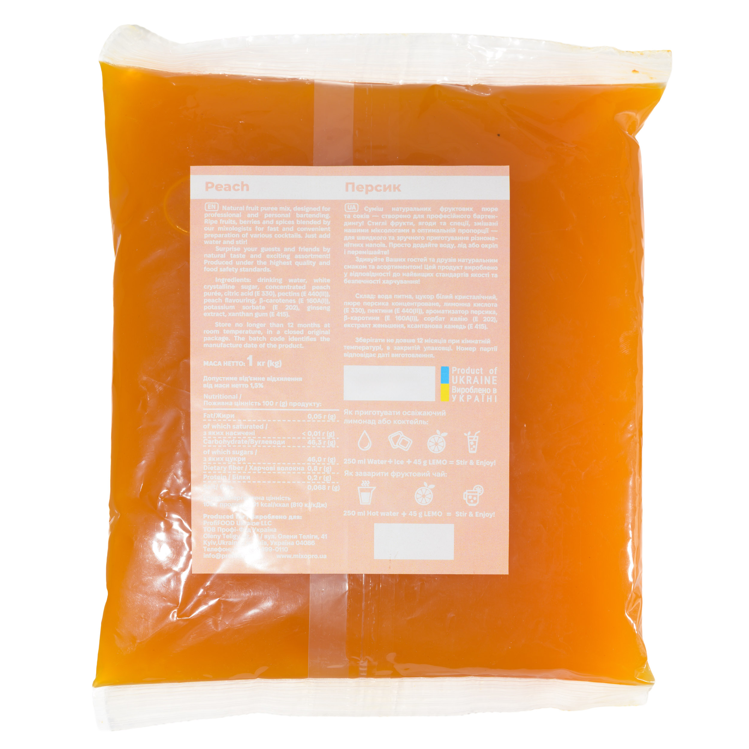 Основа для лимонаду та чаю (фруктове пюре) Lemo Персик 1 кг