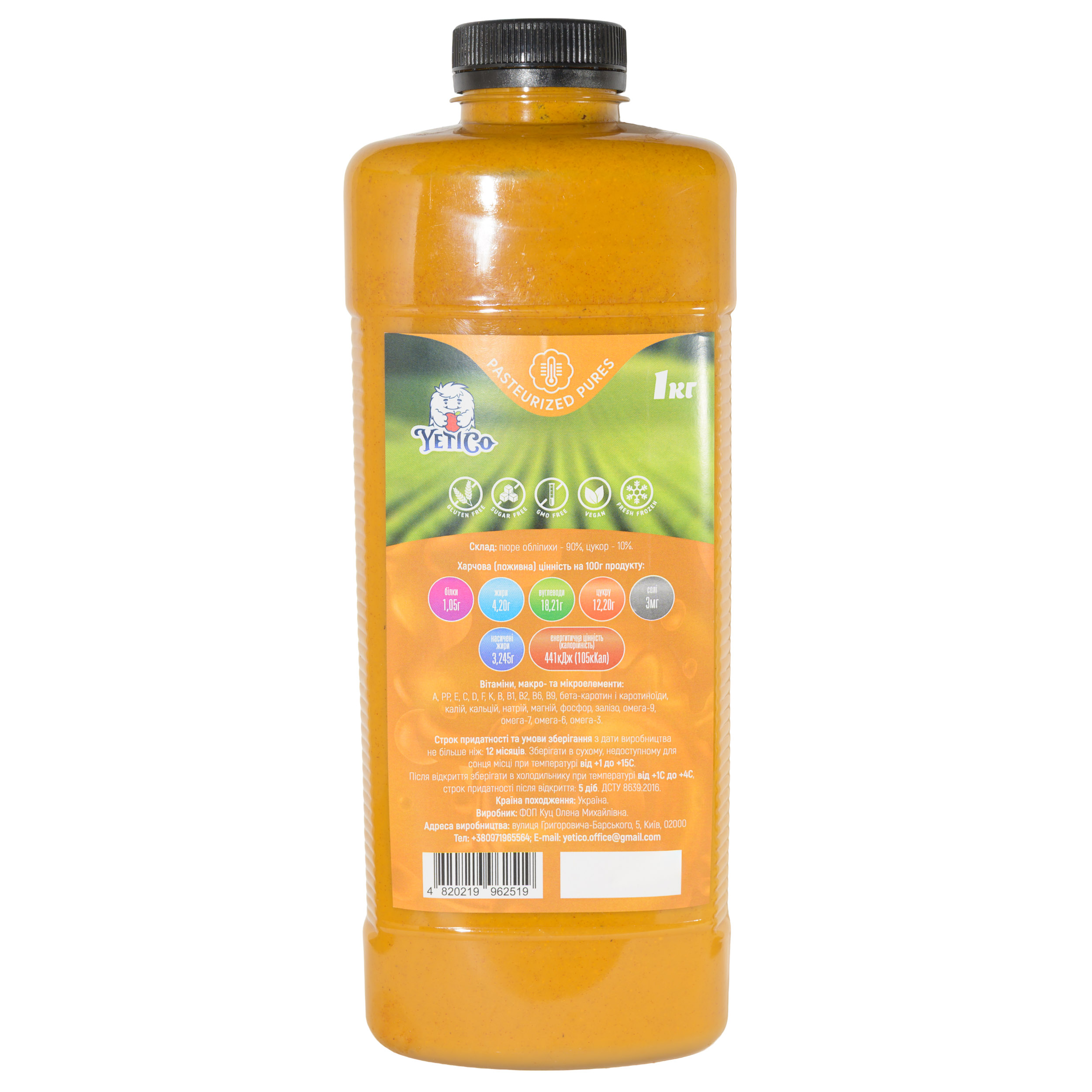 Пастеризоване пюре YetiCo Обліпиха 1 кг