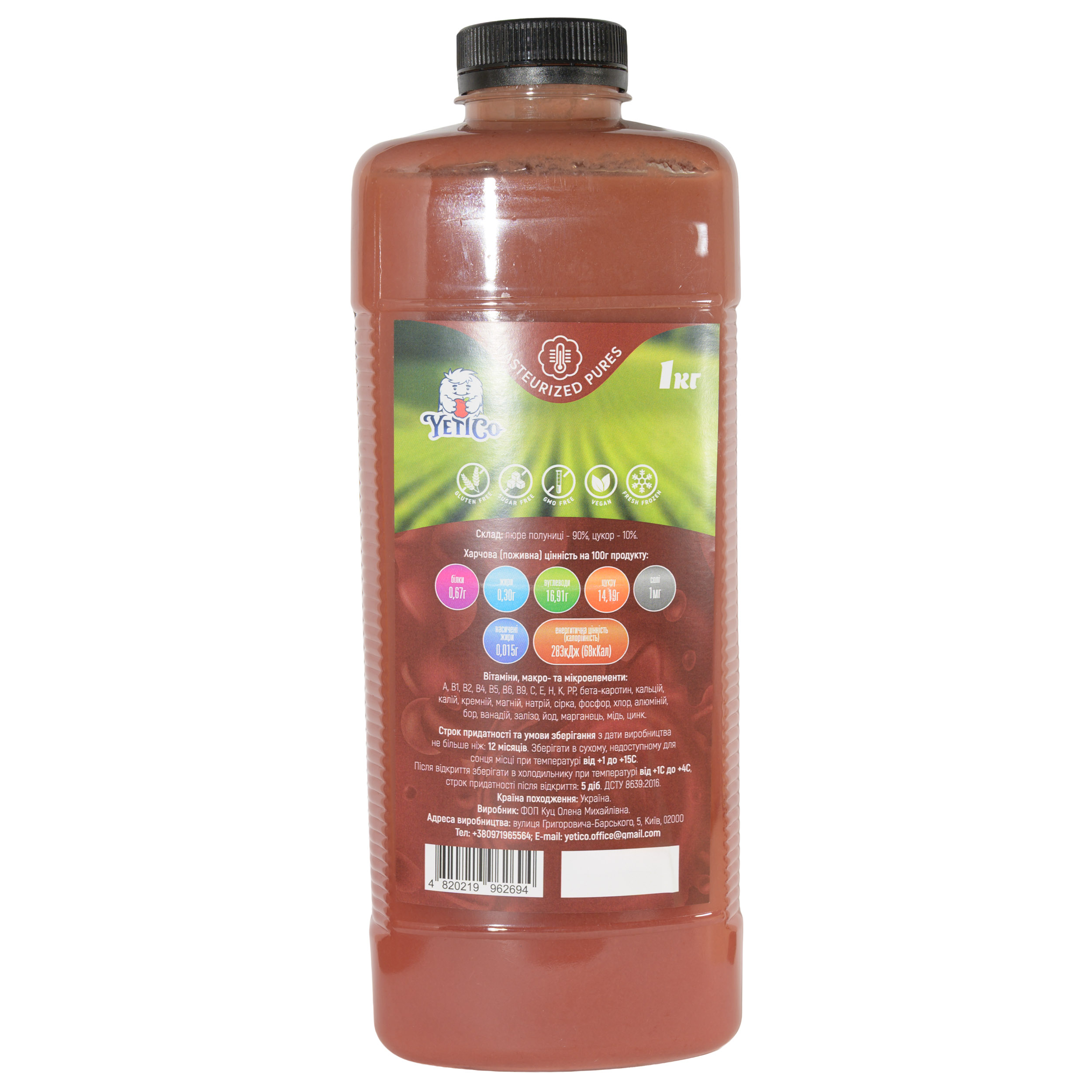 Пастеризоване пюре YetiCo Полуниця 1 кг