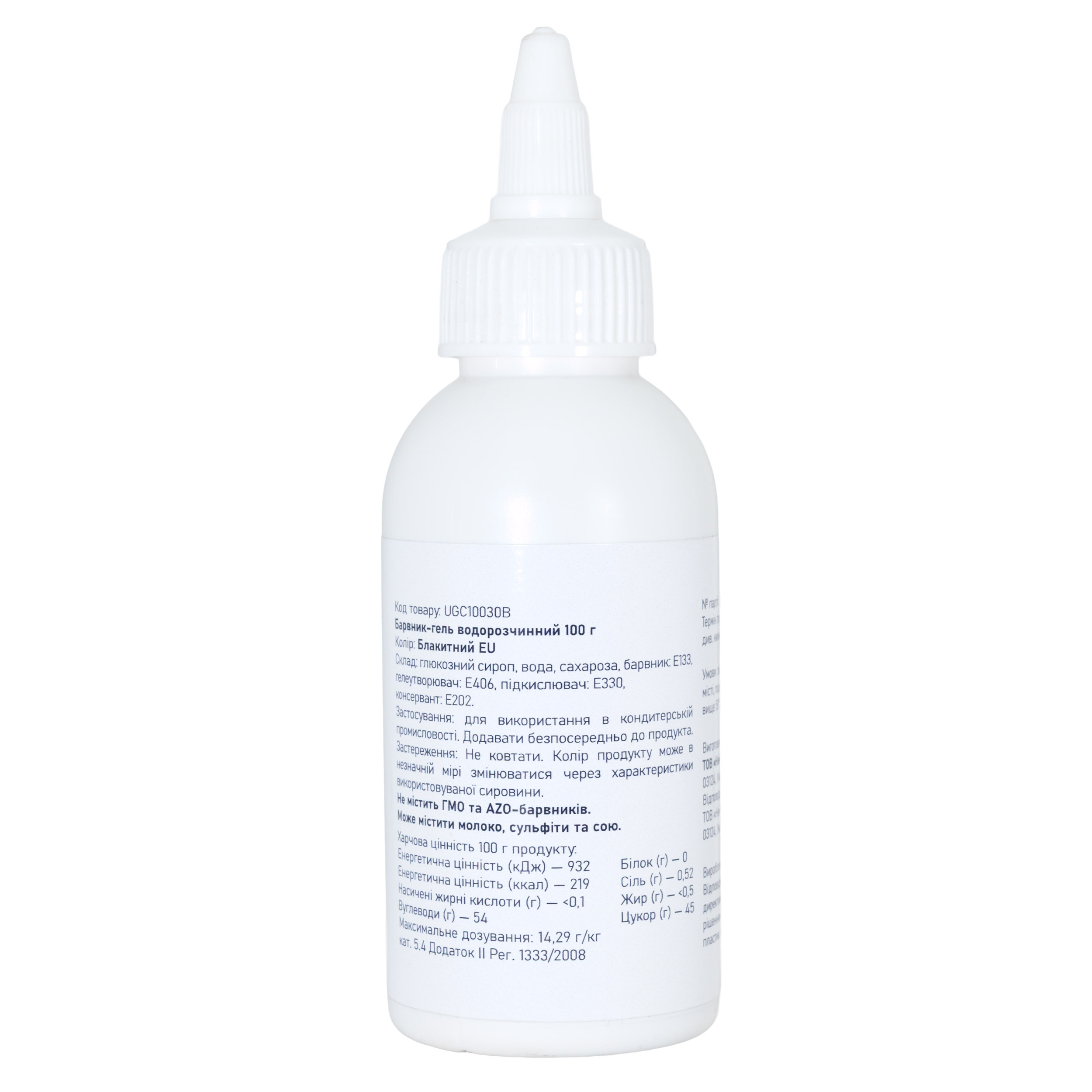 Блакитний гелевий харчовий барвник для фарбування всіх виробів на водній основі таких як цукрова паста, вершки, масляний крем, глазур, тісто, напої тощо.