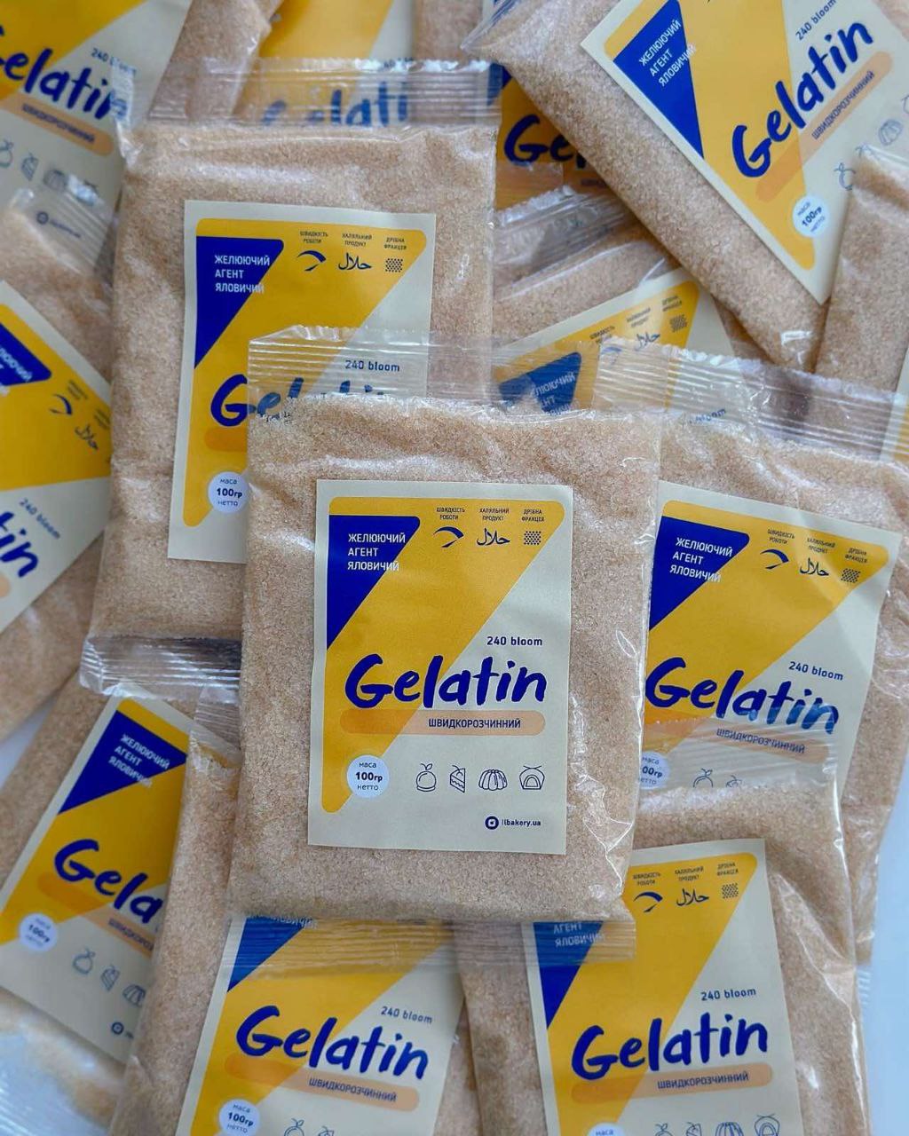 - Чи безпечний цей желатин для дітей? Так. Яловичий желатин пройшов термічну обробку, тому ризик сальмонельозу відсутній.