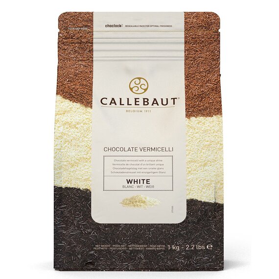 Vermicelli White виготовлена із вершкового білого шоколаду Callebaut®, вона ідеальна у своєму первозданному вигляді.