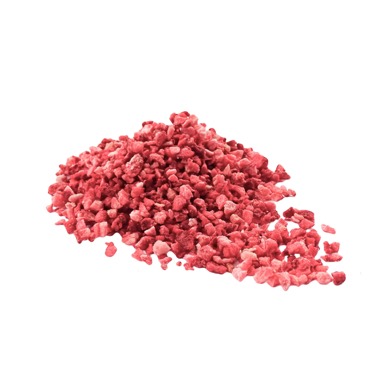 Полуниця сублімована крихта (зернятко) 100 г – 100 % натуральний продукт без додавання цукру, консервантів та барвників. Сублімовані зерна швидко вбирають вологу, даруючи вашому тісту або крему аромат свіжої полуниці і приємну хрусткість.
