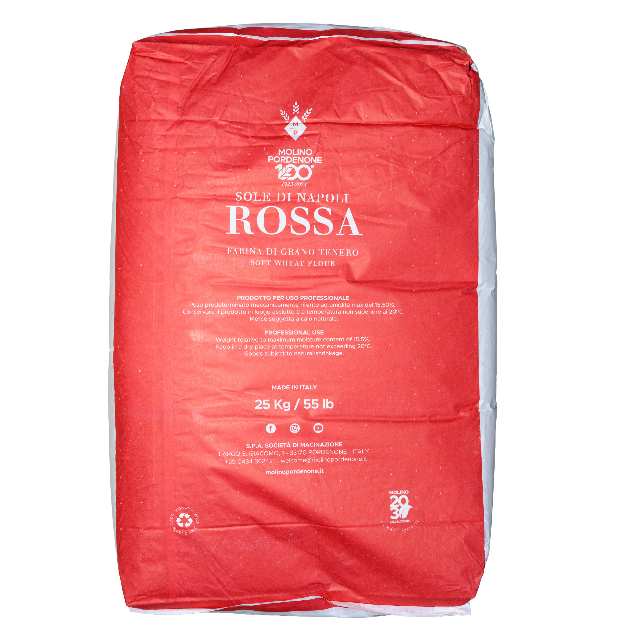 Борошно "Соле Ді Наполі" Червоне розроблена для тіста з часом зростання 24+ годин та високою гідратацією. Даний вид борошна був створений завдяки вибору певного зерна унікальної міцності з високою розтяжністю. Ідеально підходить для приготування неаполітанської піци та інших видів випічки яка потребує зросту тіста більше 24 годин.