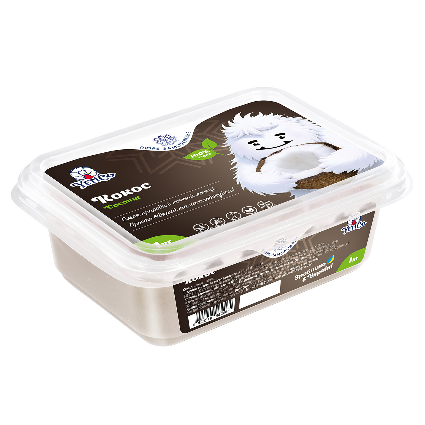 Замороженное пюре YetiCo Кокос 1 кг